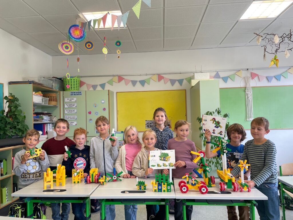 In der dritten Klasse haben die Kinder mit K-tec- Bausteinen verschiedene Konstruktionen nach Anleitung erstellt. Dieses Projekt förderte nicht nur ihre Kreativität, sondern vermittelte auch grundlegende mechanische Prinzipien auf spielerische Art. Die Schüler und Schülerinnen arbeiteten in Gruppen und lernten, wie verschiedene Teile zusammenwirken, um stabile Strukturen zu schaffen. Durch das eigenständige Experimentieren mit den Bauteilen erforschten sie Konzepte wie Stabilität, Gewicht und Banlance.