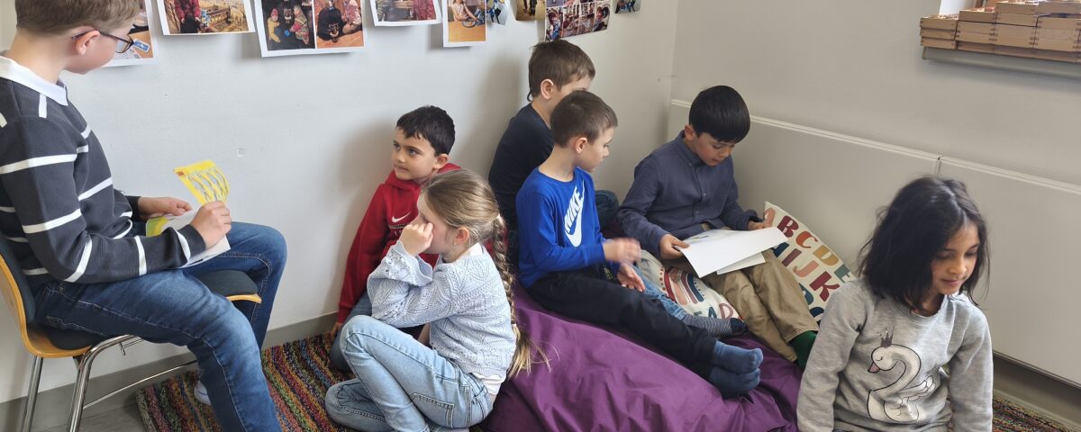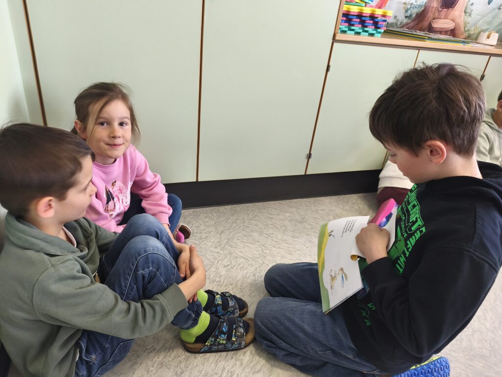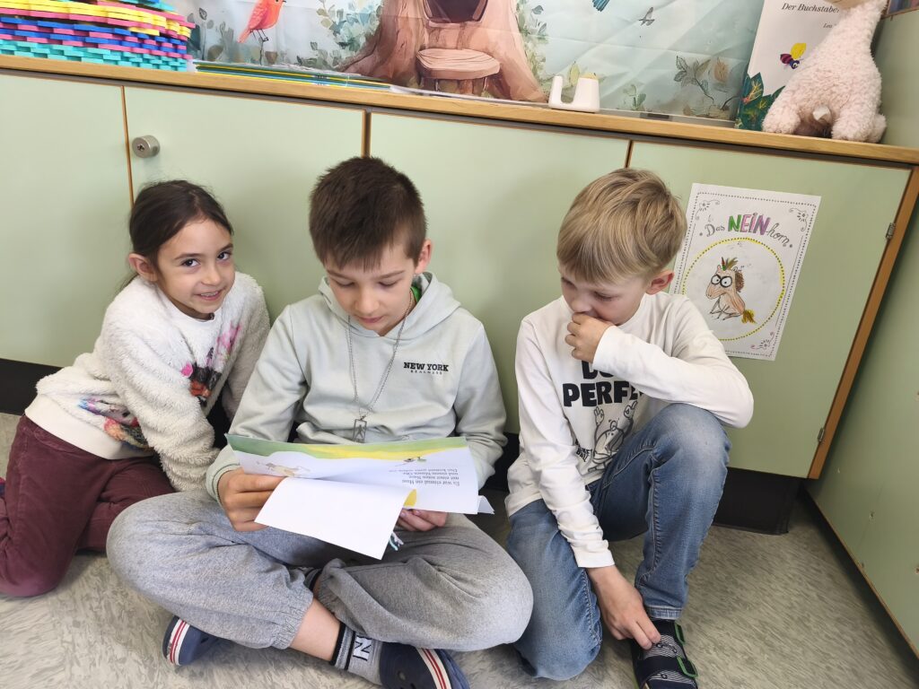 23. März 2026Am Freitag vor Ostern fand ein klassenübergreifendes Leseprojekt statt, und die Kinder der 2.b bereiteten der 1. Klasse große Freude mit dem Buch „Der Hase mit der roten Nase“. Anschließend wurde ein kooperatives Kunstwerk gestaltet.