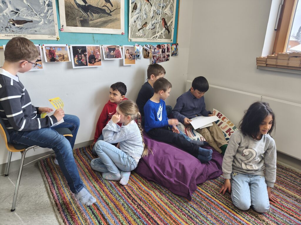 23. März 2026Am Freitag vor Ostern fand ein klassenübergreifendes Leseprojekt statt, und die Kinder der 2.b bereiteten der 1. Klasse große Freude mit dem Buch „Der Hase mit der roten Nase“. Anschließend wurde ein kooperatives Kunstwerk gestaltet.